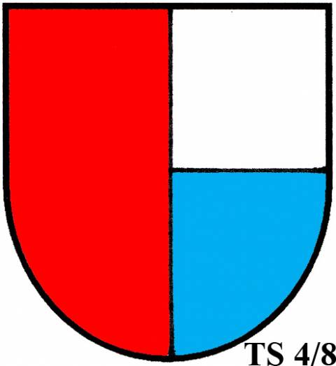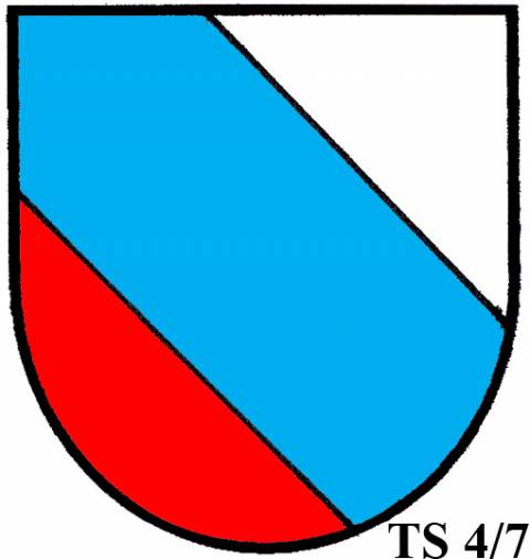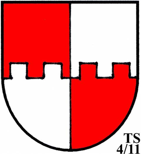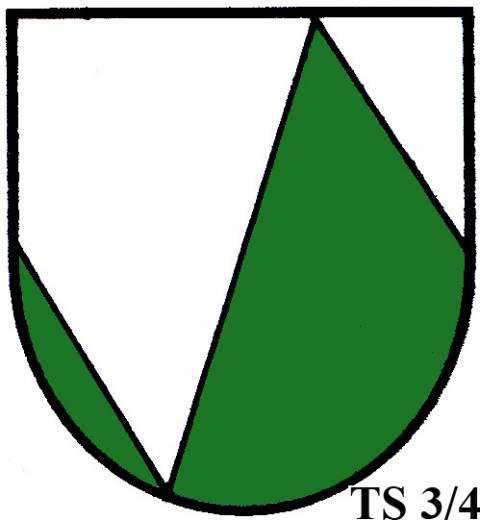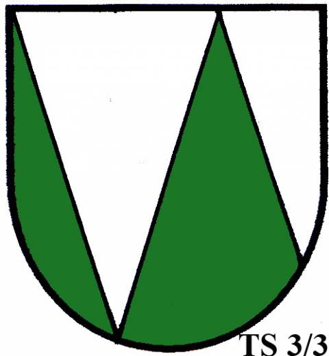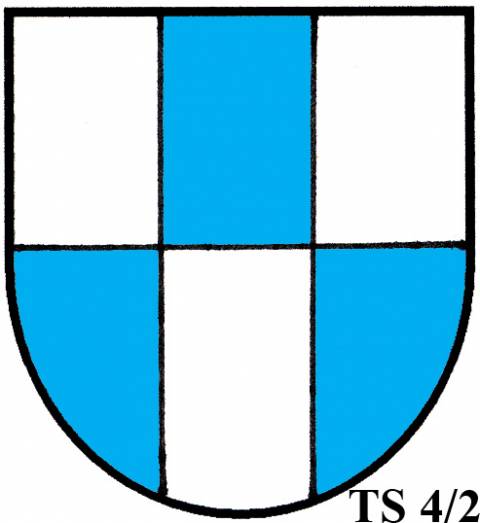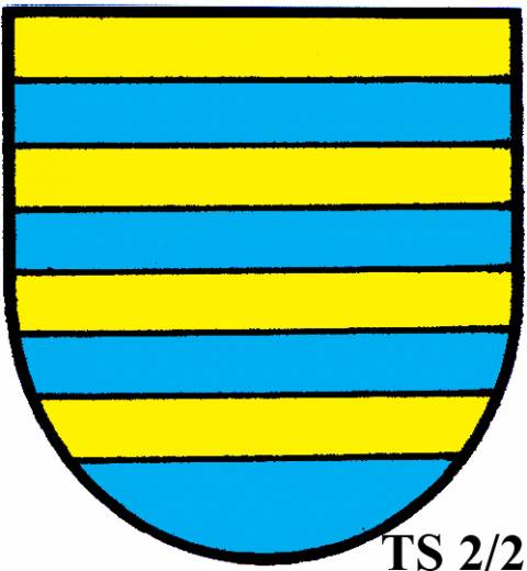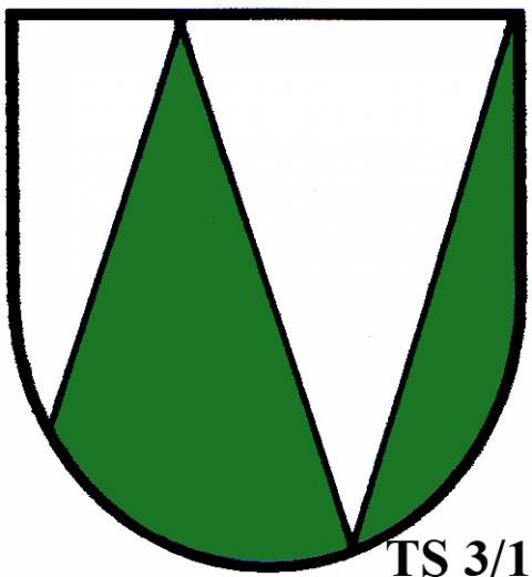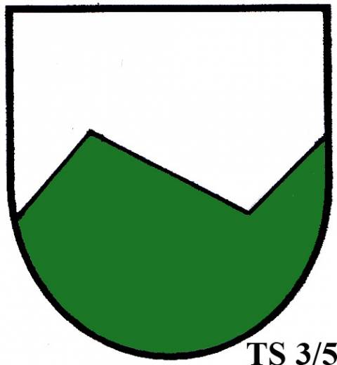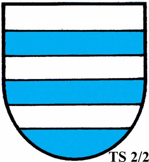 V modro-zeleně děleném štítě stříbrné zúžené břevno...