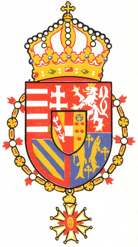 Barevné provedení erbu arcivévodů rakouských, velkovévodů toskánských s kolanou toskánského řádu sv. Josefa (kresba Jiří Louda)