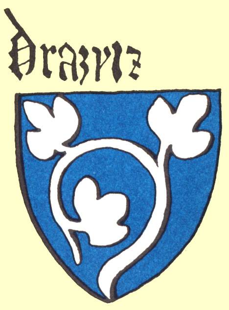 Uvedený závěr verifikují dva erbovníky zhotovené okolo roku 1400, resp. druhý po roce 1400. Erbovník Thomase Poveye uložený v knihovně heroldského úřadu College of Arms v Londýně (sign. B 23) obsahuje krom jiných i erb pánů z Dražic (fol. 47v) v podobě modrého štítu, v němž je zlatá větev vinné révy s třemi listy (Růžek, Vladimír: Říšský a český erbovník Václava IV. a čeští heroldi. In: Bobková, Lenka – Šmahel, František: Lucemburkové, česká koruna uprostřed Evropy. Praha 2012, s. 447 – 450; Růžek poznamenává, že erbovník byl namalovaný ok. r. 1400 heroldem českého krále a obsahuje 152 erbů; Mitchell, Robert W., College of Arms: Povey´s Roll: Temp. Edward II, Heraldry Society of Scotland 1983). V městské knihovně v Antverpách je uložen rukopis heraldického kompendia Hendrika van Heessel, který byl císařským heroldem Zikmunda Lucemburského a heroldem burgundského vévody Filipa Dobrého. Na foliu 63v je uveden erb pánů z Dražic – modrý štít a v něm zlatá vinná větev s listy (Heessel, Hendrik van: Wapenboek. s. l. [14--?]. Stadbibliotheek Antwerpen, sign. B 89420). Znalost tradice modrého štítu se zlatou vinnou větví s třemi listy, jako erbu pánů z Dražic, potvrzují i tzv. Dírenské erbovníky z 80. let 17. století (Hrdinová, Martina: Erby ctihodné šlechty slavného Království českého. Edice a analýza dvou erbovníků české šlechty z 80. let 17. století. Praha 2013, s. 197).