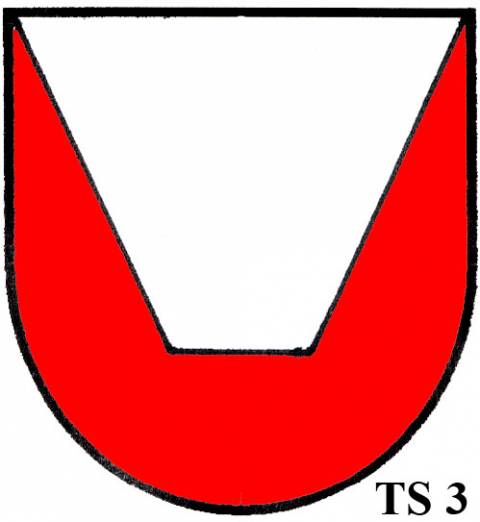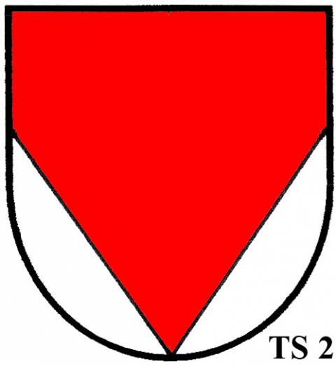 Oba ŘEZY jsou KOSMÉ / ŠIKMÉ a směřují k LEVÉMU / PRAVÉMU DOLNÍMU OKRAJI ŠTÍTU. Oba ŘEZY vycházejí přibližně z poloviny horního okraje a poloviny LEVÉHO / PRAVÉHO okraje štítu. Oba klíny jsou obvykle v základním tvaru, odlišné modifikace doporučujeme popsat podle navržených termínů HTK.