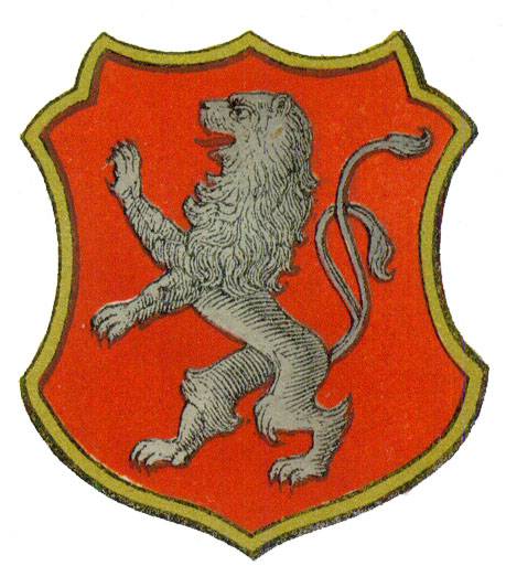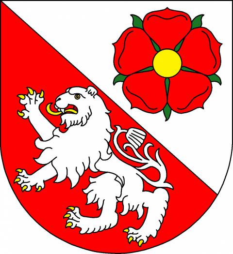oba historické městské znaky. Kosmé, stejně jako šikmé, dělení štítu vytváří dvě