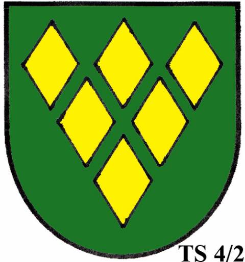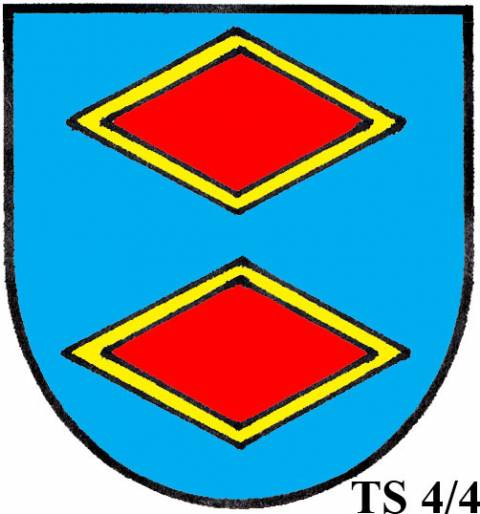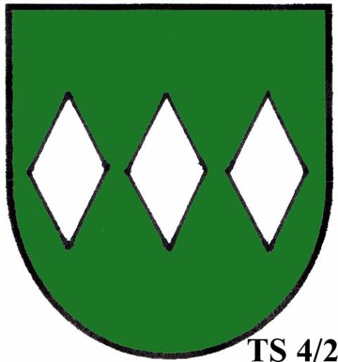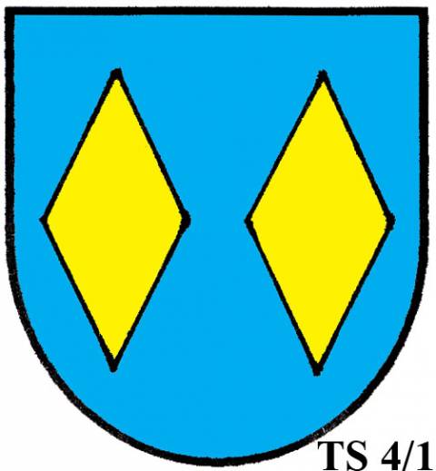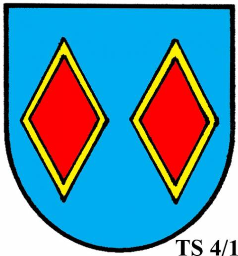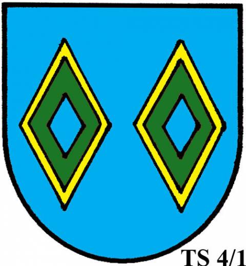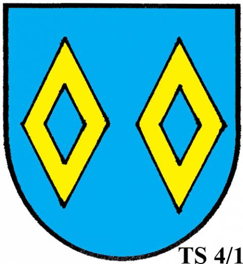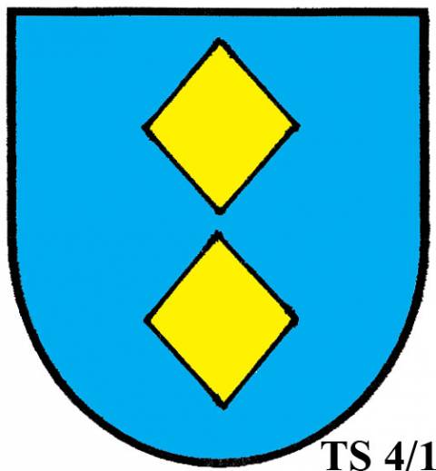 V modrém štítě dvě zlaté routy.TS 4/2: TŘI A VÍCE ROUT