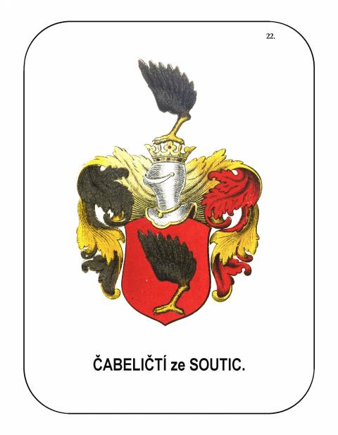 Z rodových erbů byl vybrán erb Čábelických ze Soutic včetně doprovodného textu.